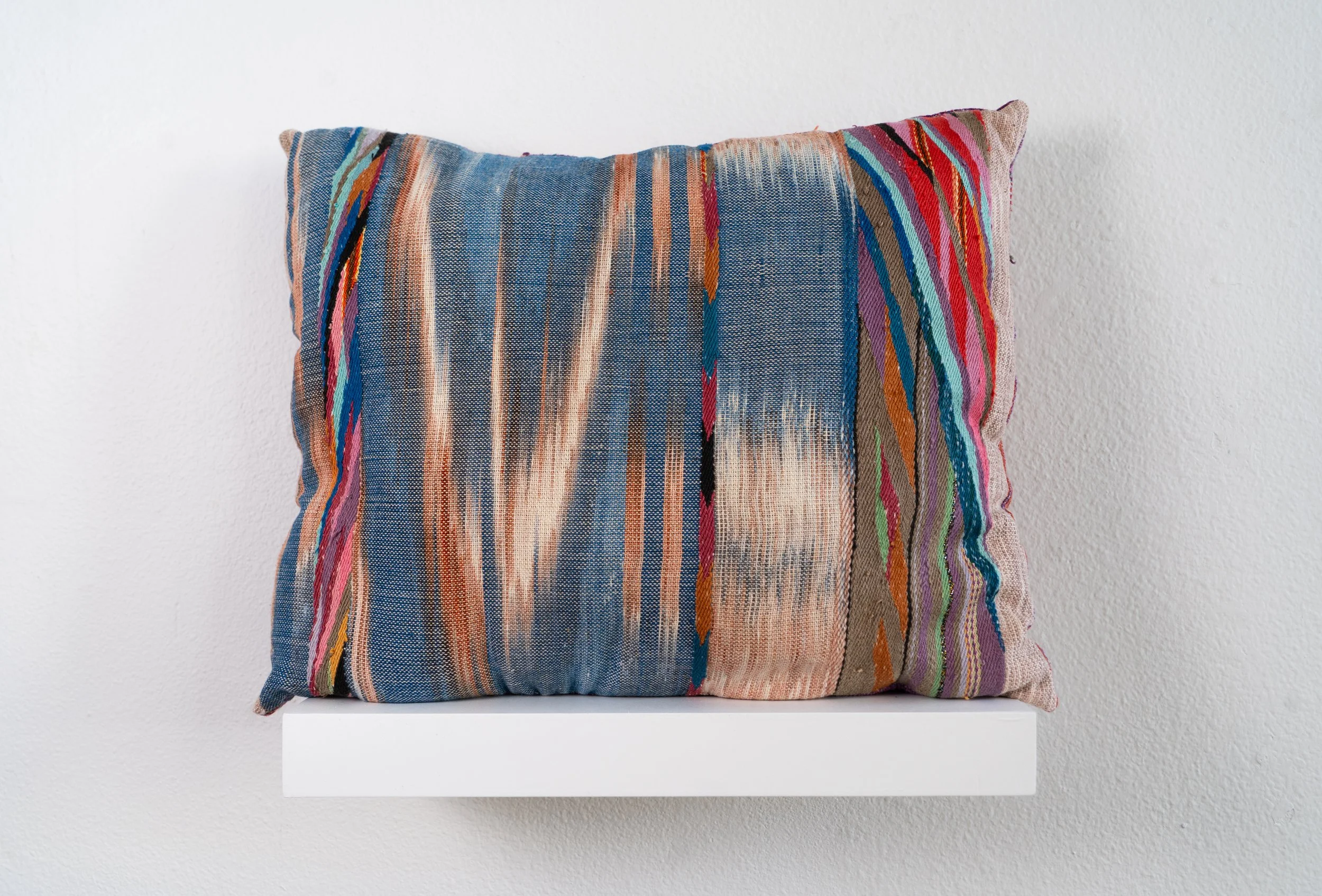 Peggy’s marriage ended in 1980 and she moved to the Simi Valley north of Los Angeles. Now a single mother, Peggy supported her family by selling one-of-a-kind woven garments. Many of Peggy’s clients would drive up to her studio from Los Angeles; some were Hollywood actresses, most notably Shirley Maclaine. Peggy worked as a weaver for thirty productive years. Unfortunately, however, when three decades of working took a toll on her shoulder, she had to step away from the loom. It was then that she turned to making colored-pencil drawings, pillows, dolls, and punch-needle works.