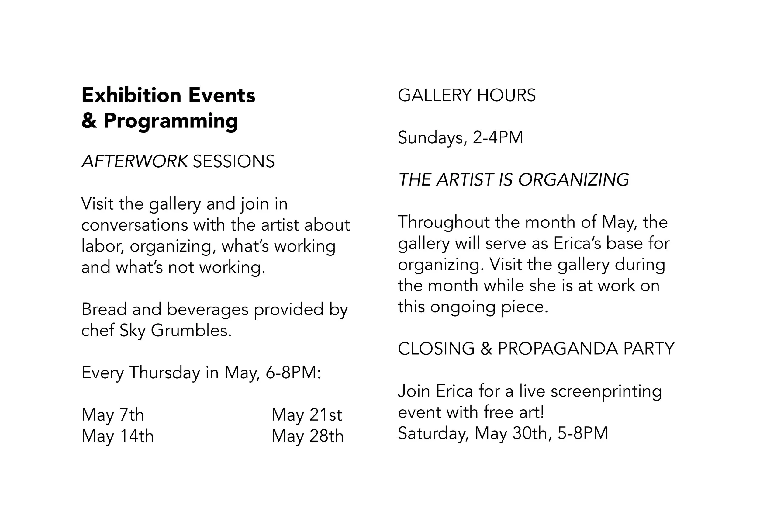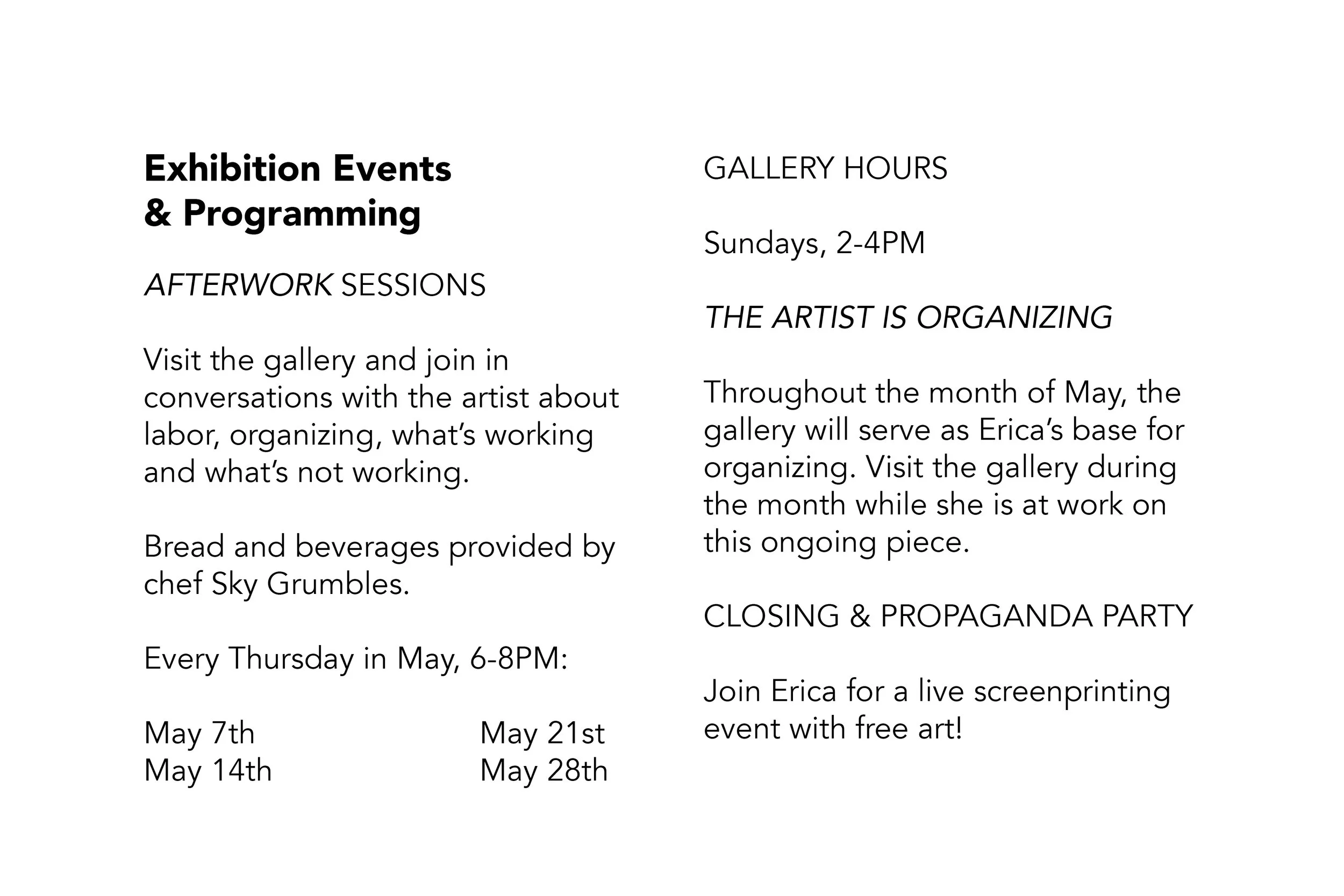 Erica Meryl Thomas is an interdisciplinary conceptual artist, educator, and organizer living in both Portland, OR and Bellingham, WA. Her work explores labor, value, exchange, and the various ways art and political movements influence each other. She often invites participation or works collaboratively with others as an embedded artist to uncover stories through personal interactions. The resulting projects take the form of installations, storytelling or documentary, interventions in public space, conversations, printmaking, publications and books, performances, and other forms. She organizes education workers as Co-Chair of her adjunct faculty labor union, Portland State University Faculty Association AFT local 3571, as an at-large member of the United Faculty of Western Washington, and she co-chairs the Portland Democratic Socialists of America’s organizing committee Labor Working Group. Her work in political struggle, as a teacher and as an artist are intertwined, each informing the other.